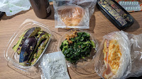 回車站時路經牛舌樓下,進去繞一圈買了兩個毛豆大褔,相當好吃,都想帶回台灣當伴手了。在House of Roses買軟膏時店員讓廖試了上羽繪惣的胡粉指甲油,感覺跟一般指甲油的成份完全不同,專用的清除劑也完全沒有嗆味,就加了一組來玩。再來快速地到食品街買沙拉和麵包,廖買了大盒水茄子沙拉,吃起來清爽似不甜的水果,蠻有趣的。